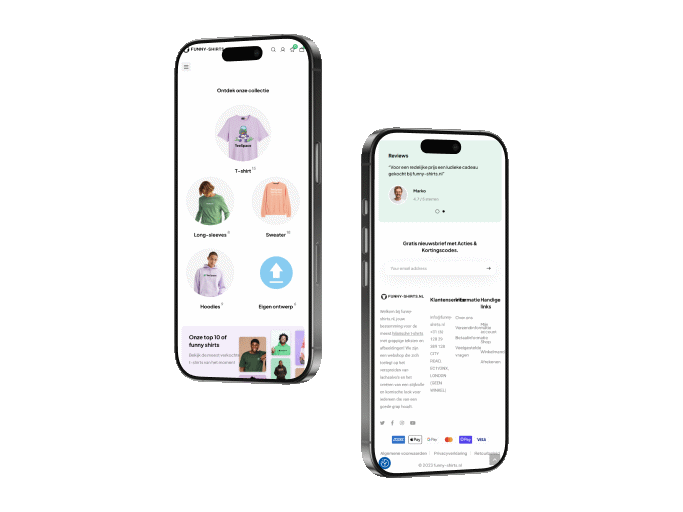 The design of Funny-Shirts.nl was crafted to reflect the fun and creative nature of the brand. We used bright colors, playful fonts, and high-quality visuals to create an inviting and user-friendly interface. The layout is designed to be both attractive and functional, making it easy for customers to find and customize their desired products.