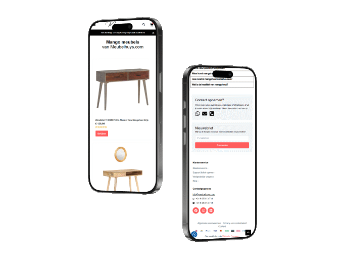 The design of Meubelhuys.com was crafted to reflect the natural beauty and uniqueness of mango wood furniture. We employed a clean and elegant design language, using high-resolution images, intuitive layouts, and a neutral color palette that complements the product offerings.